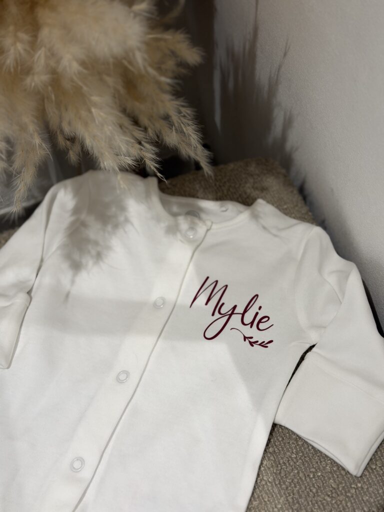 Craquez pour ce coffret composé d’un body à manches longues, d’un pyjama tout doux et d’une boule de Noël en bois personnalisée. La couleur de l’écriture est personnalisable.